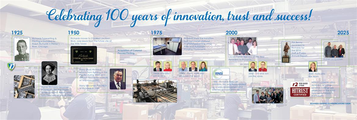 2025 – Richards celebrates 100 years of service and celebrates our dedicated employees, suppliers and amazing clients.